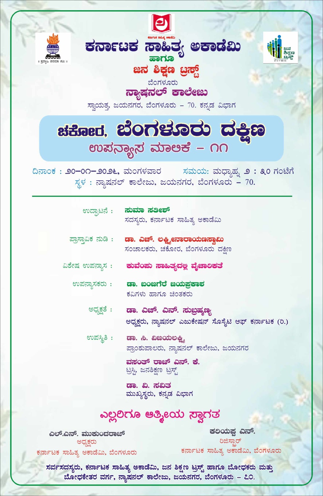 > ‘ಚಕೋರ-ಬೆಂಗಳೂರು ದಕ್ಷಿಣ : ಉಪನ್ಯಾಸ ಮಾಲಿಕೆ – ೧೧” ಕಾರ್ಯಕ್ರಮ