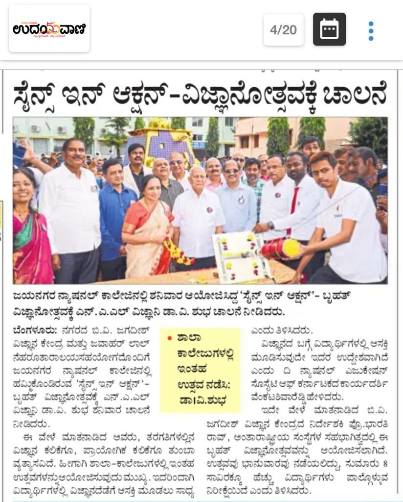 Nadaprabhu Kempegowda award was given to Bangalore Science Forum, a unit of The National Education Society of Karnataka (R)