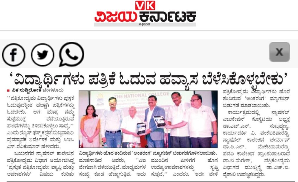 ವಿದ್ಯಾರ್ಥಿಗಳು ಪತ್ರಿಕೆ ಓದುವ ಹವ್ಯಾಸ ಬೆಳೆಸಿಕೊಳ್ಳಬೇಕು