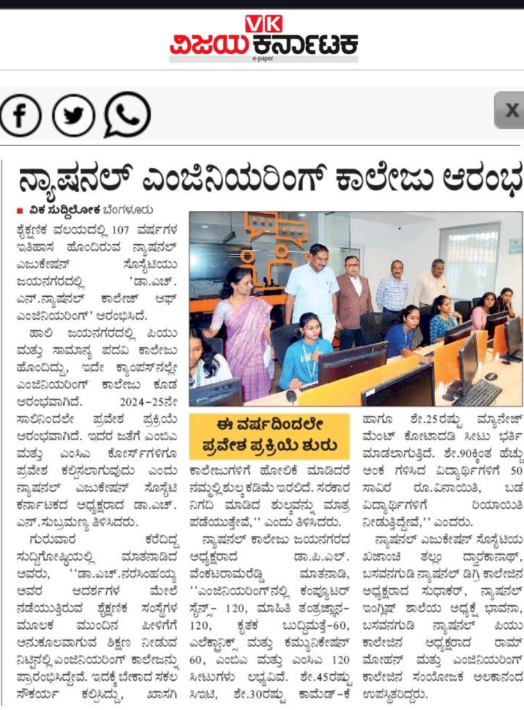 ನ್ಯಾಷನಲ್ ಇಂಜಿನಿಯರಿಂಗ್ ಕಾಲೇಜು ಆರಂಭ