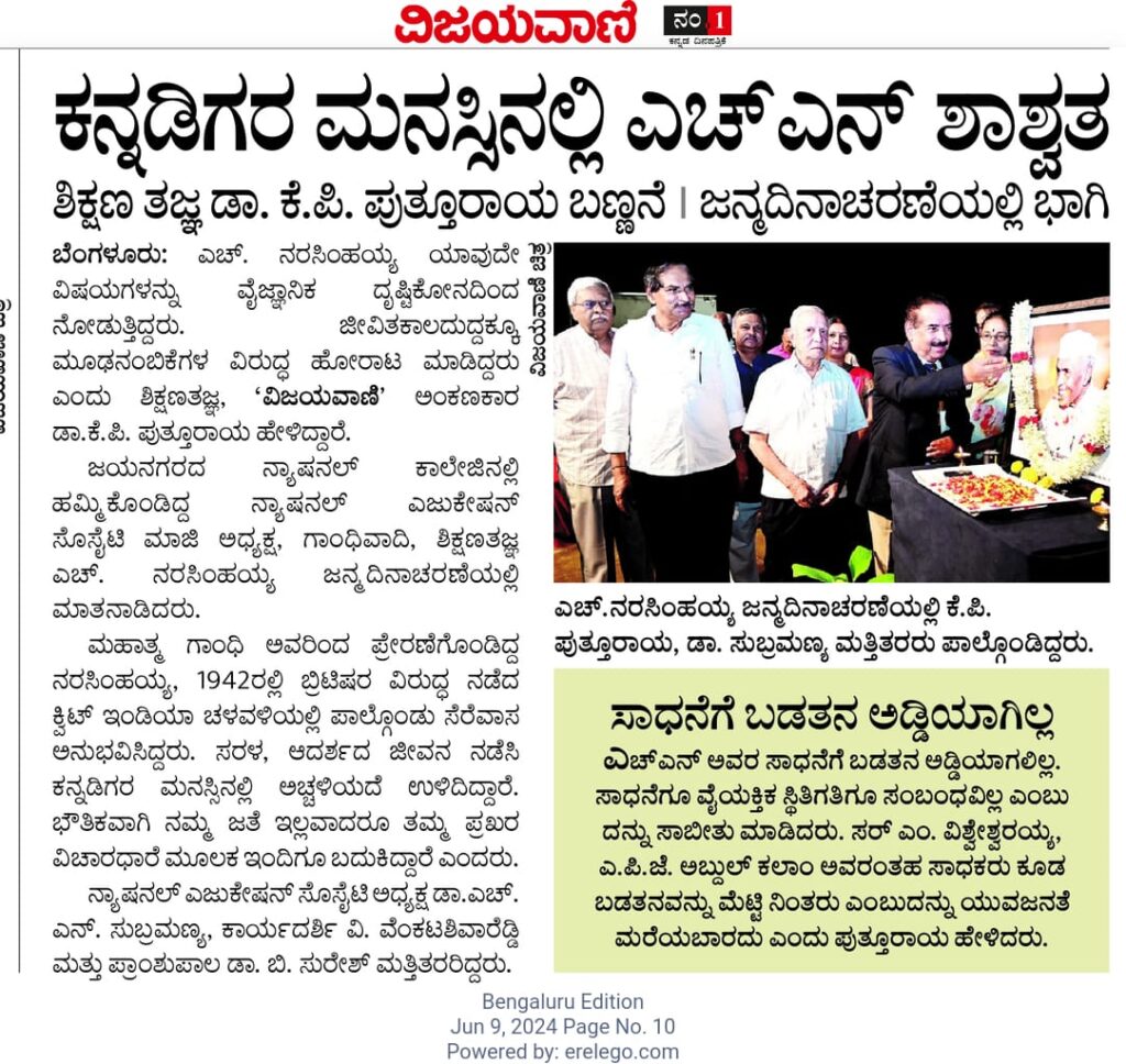 ಕನ್ನಡಿಗರ ಮನಸ್ಸಿನಲ್ಲಿ ಎಚ್ ಎನ್ ಶಾಶ್ವತ – ಶಿಕ್ಷಣ ತಜ್ಞ ಡಾ. ಕೆ ಪಿ ಪುತ್ತೂರಾಯ