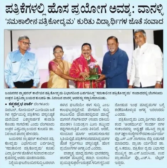 ಪತ್ರಿಕೆಗಳಲ್ಲಿ ಹೊಸ ಪ್ರಯೋಗ ಅವಶ್ಯ: ವಾನಳ್ಳಿ