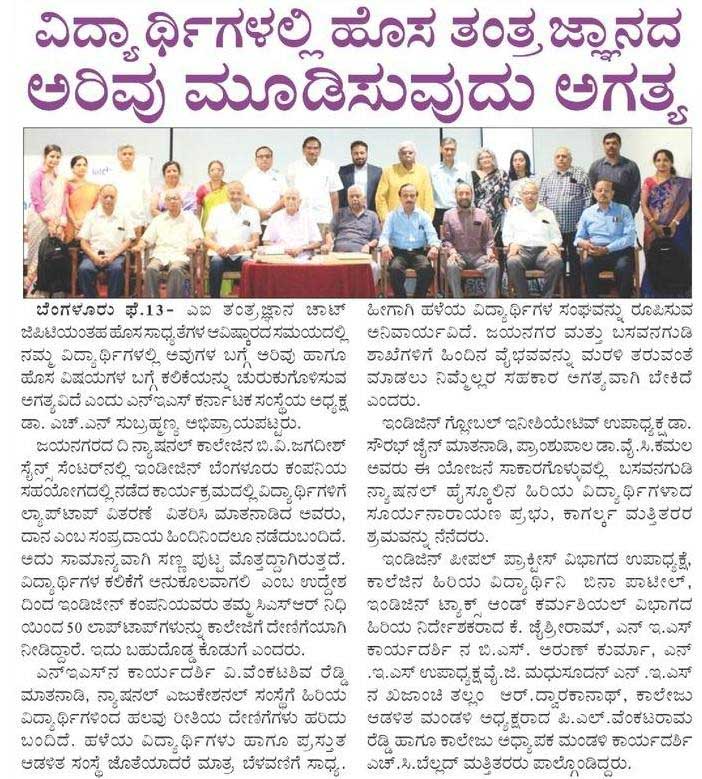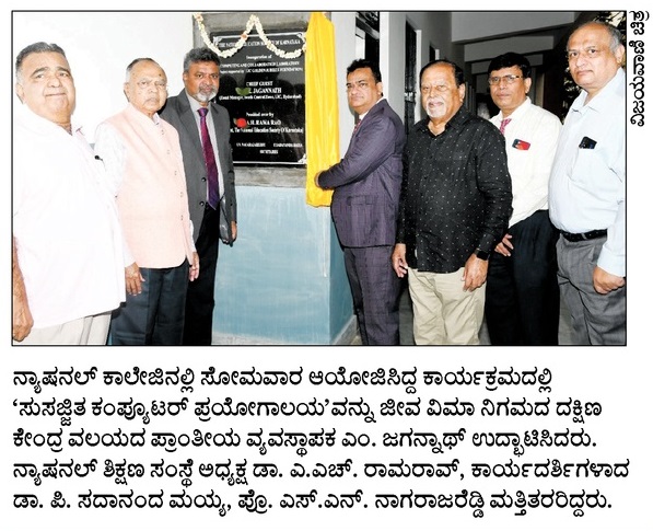 ನ್ಯಾಷನಲ್ ಕಾಲೇಜಿನಲ್ಲಿ ಸುಸಜ್ಜಿತ ಕಂಪ್ಯೂಟರ್ ಪ್ರಯೋಗಾಲಯದ ಉದ್ಘಾಟನೆ