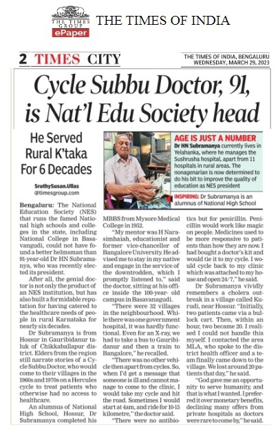 Cycle Subbu Doctor, 91 is Nat’l Edu Society Head