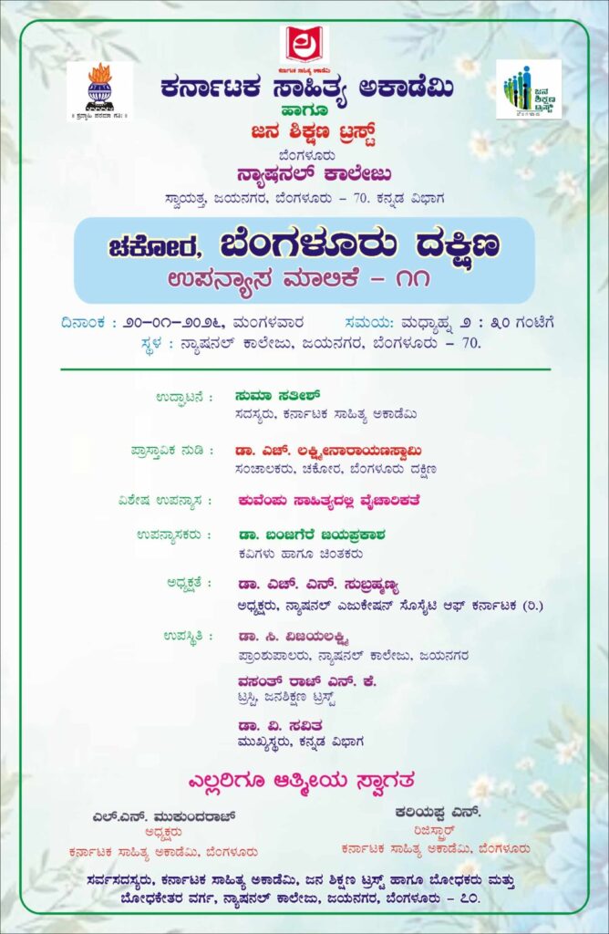 ‘ಚಕೋರ-ಬೆಂಗಳೂರು ದಕ್ಷಿಣ : ಉಪನ್ಯಾಸ ಮಾಲಿಕೆ – ೧೧” ಕಾರ್ಯಕ್ರಮ