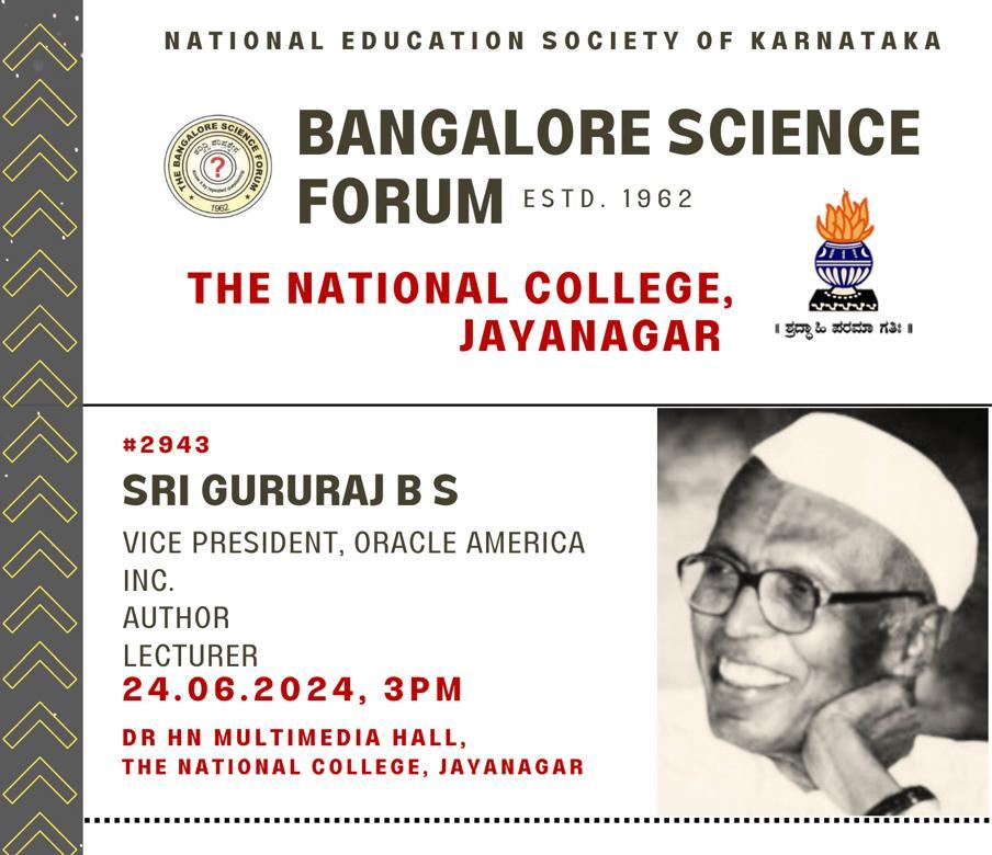 Bangalore Science Forum Lecturer Programme by Sri Gururaj B S. Vice President Oracle America Inc. on 24.06.2024
