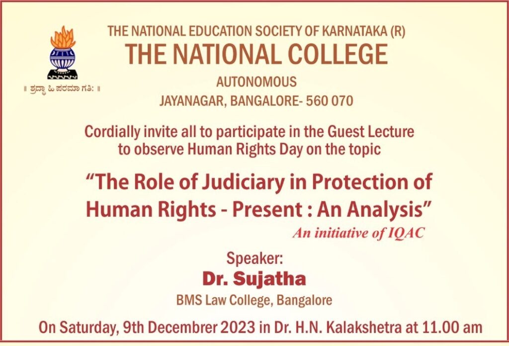 The Role of Judiciary in Protection of Human Rights- Present : An analysis An Initiative of IQAC on 09.12.2023