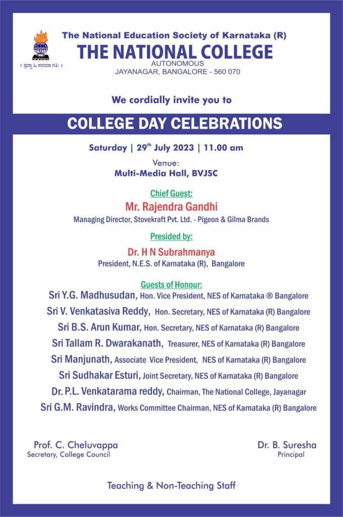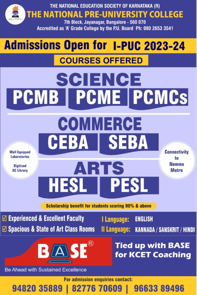 Click here for I PUC Admission Application Form Contact us : Principal The National Pre-University College 7th Block Jayanagar, Bangalore-560070 Phone No: 080-26533541 Mobile No : 7892462101 e-mail : ncpuj62@gmail.com