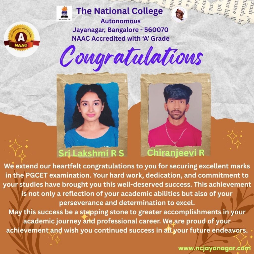 We extend our heartfelt congratulations to you for securing excellent marks in the PGCET examination. Your hard work, dedication, and commitment to your studies have brought you this well-deserved success. This achievement is not only a reflection of your academic abilities but also of your perseverance and determination to excel. May this success be a