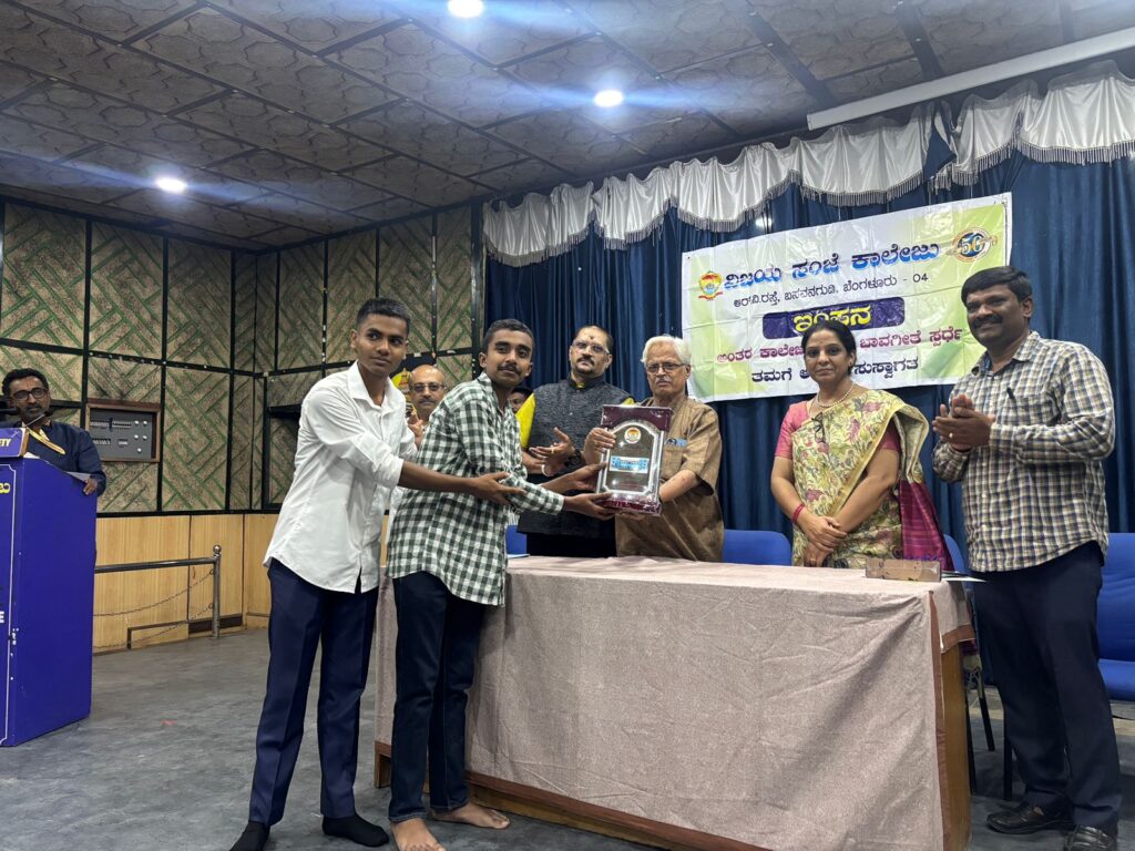 Vijaya Evening College organized a Bhavageethe music competition, and our students Pranav and Srivathsa participated and won the prizes. Pranav 2nd prize The team also won the overall championship.
