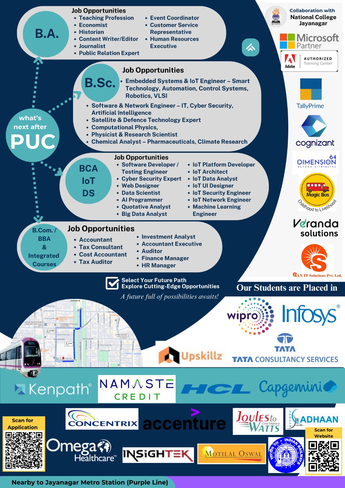 The National college ,Jayanagar is introducing three new and unique undergraduate programs from 2019 – 20. The program is designed to build the theoretical fundamentals in the areas of Data Science, Internet of Things and Bio Medical electronics. The coursework has been designed to suit the industry needs. A panel of National college Alumni like Dr. S. Sitharam Iyengar Distinguished University Professor and Director of Florida International University, Miami, Florida, K.S.G Shankar (Former VP & Chief Quality officer, Symphony Services corporation), Phanibhushan Y Sharma(Chief-Coordinator, Education, Research and Technology, NES) M V Bhujanga,Mentor, and Alumni from the Industry and the academic staff of National college have come together to design an exciting curriculum which makes the Students ready for the industry after graduation. The Curriculum builds strong fundamentals in respective subjects, helps the students to apply the theory in practical applications and provides a hands-on approach while learning