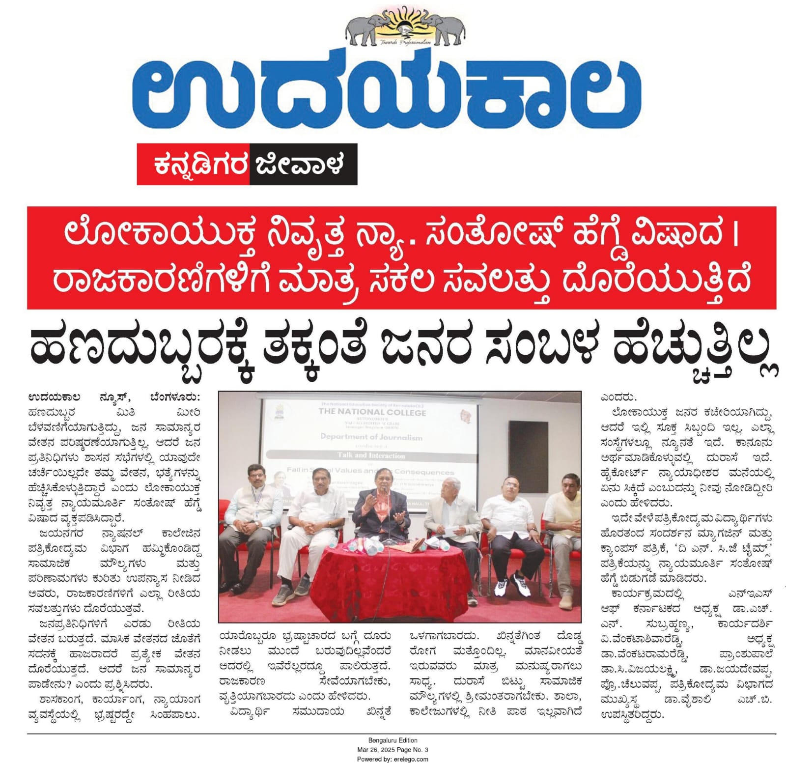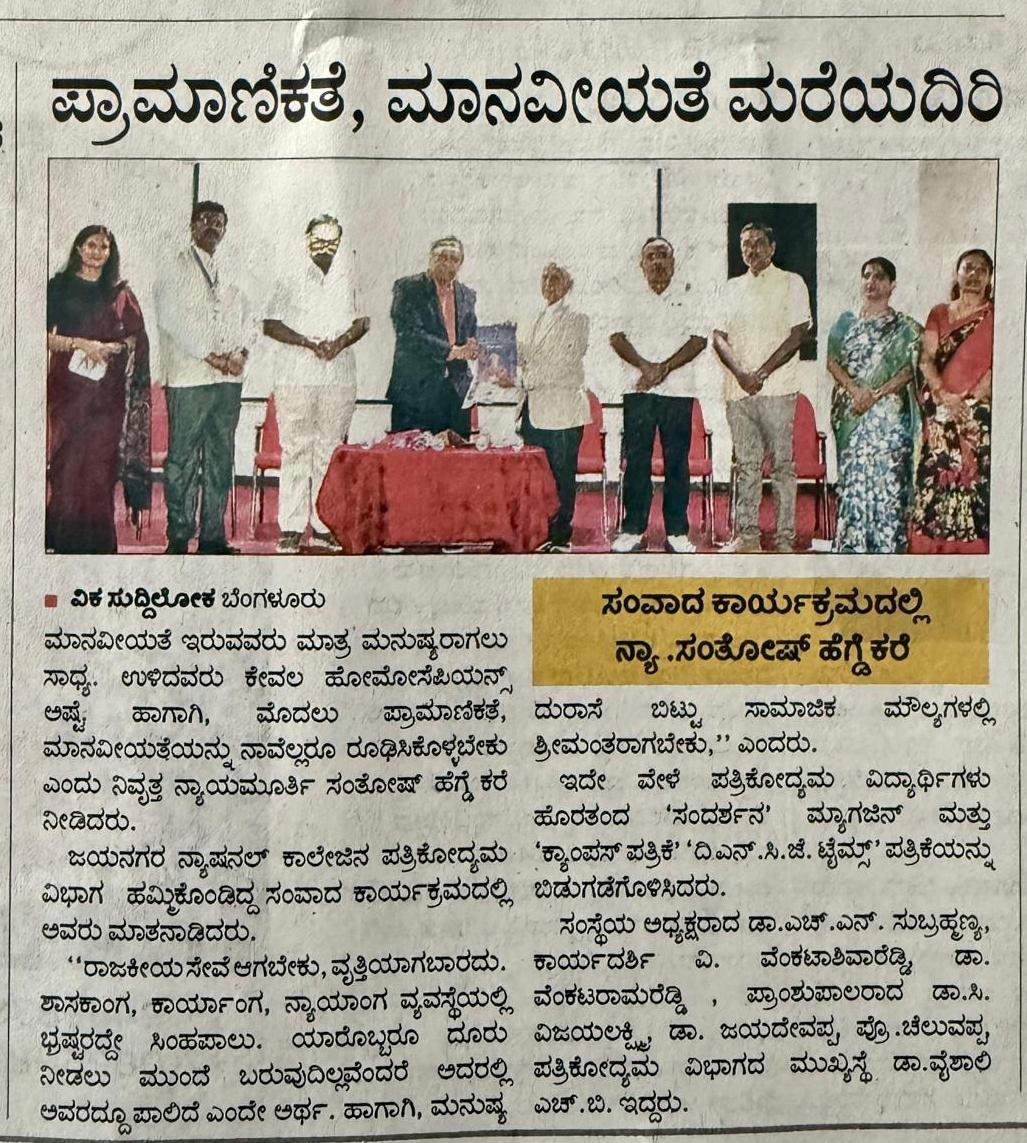 > Dept of Journalism Organized a Talk & Interaction on fall in social values & its Consequences
