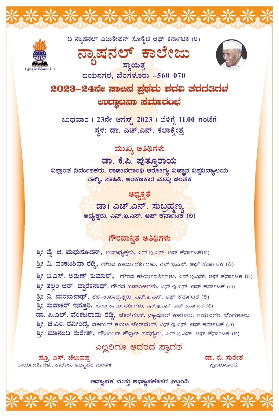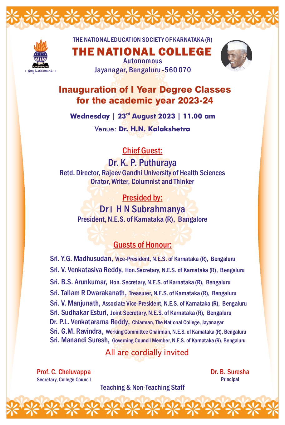 > Inauguration of I Year Degree Classes for the academic year 2023-24