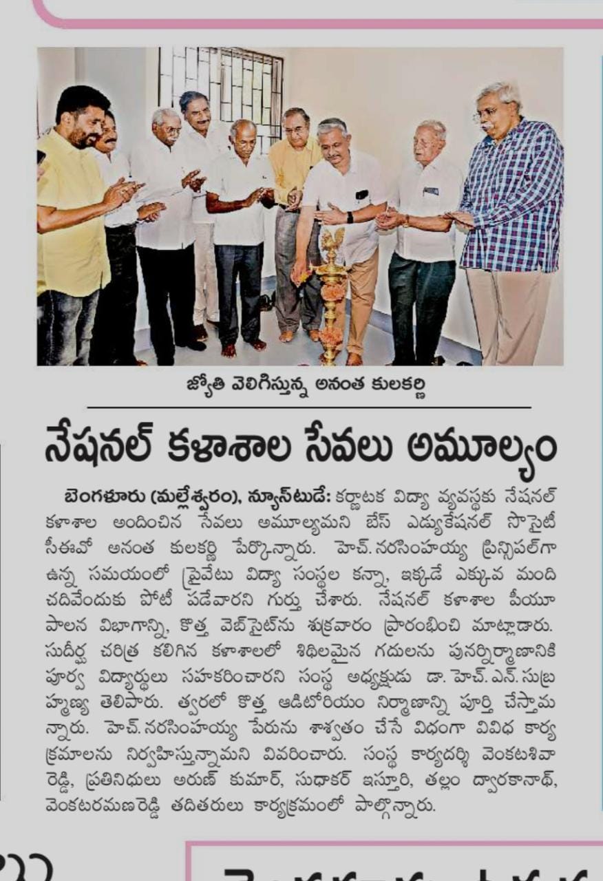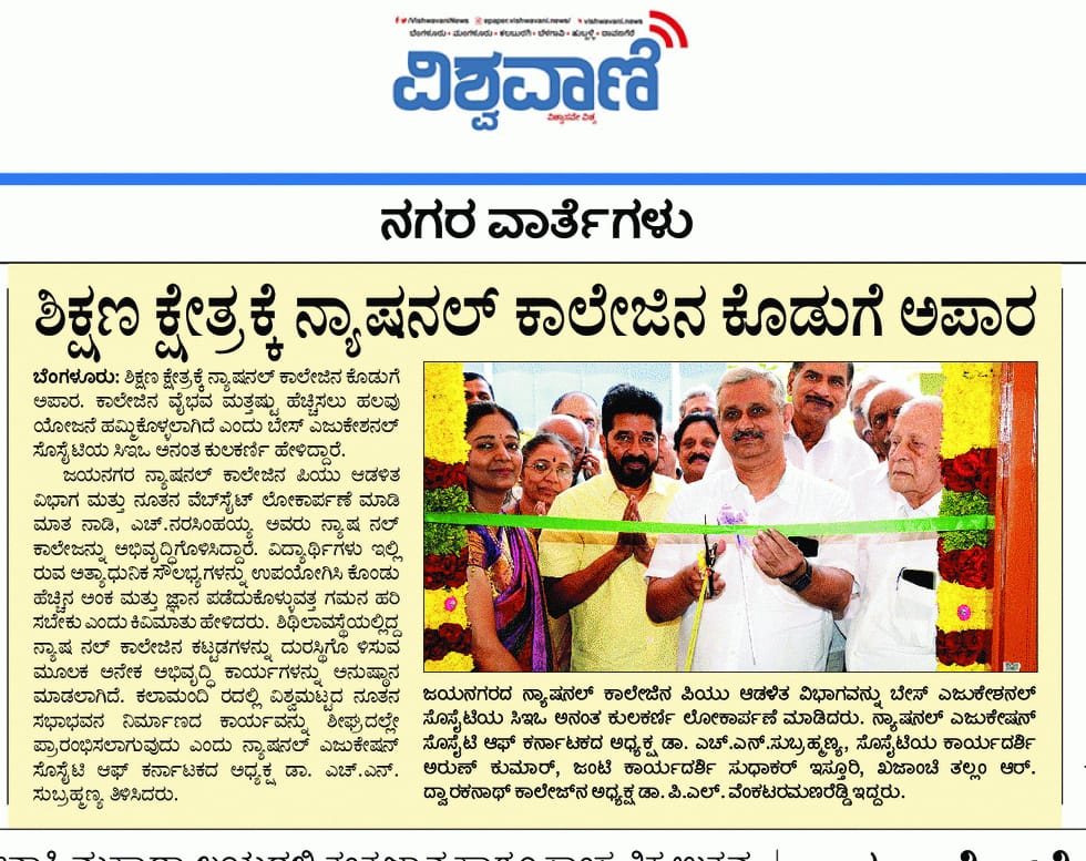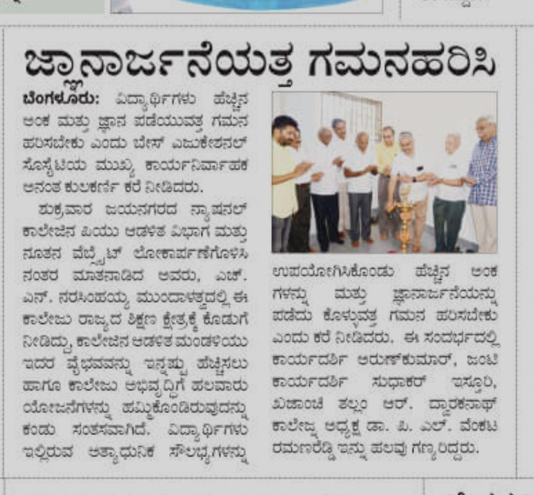 ರಾಜ್ಯದ ಶಿಕ್ಷಣ ಕ್ಷೇತ್ರಕ್ಕೆ ನ್ಯಾಷನಲ್ ಕಾಲೇಜಿನ ಕೊಡುಗೆ ಅಪಾರ : ಅನಂತ್ ಕುಲಕರ್ಣಿInauguration of Pre-University Admin Block