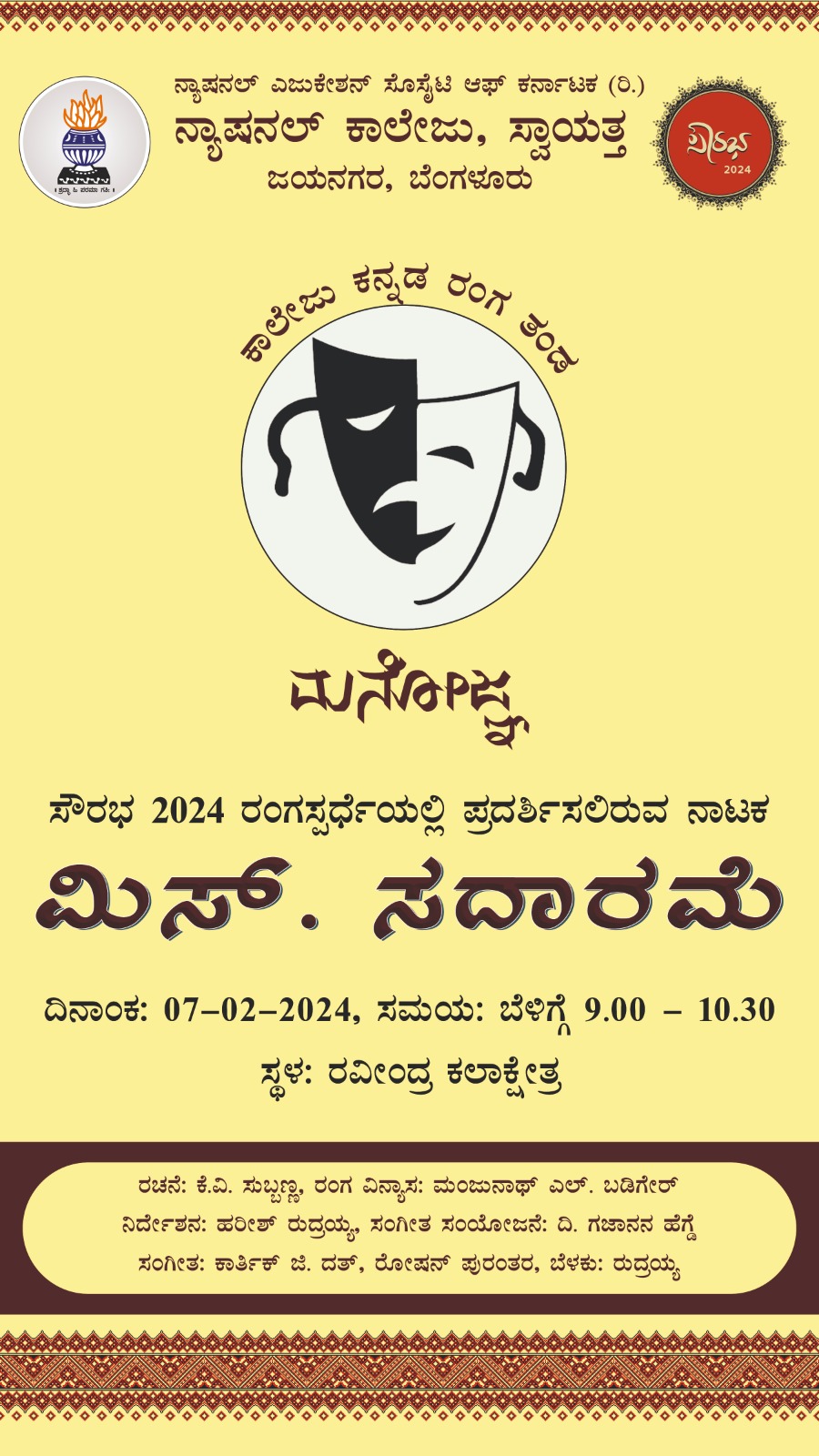 > Miss Sadarame Drama Show at Ravindra kalakshetra on 7.02.2024