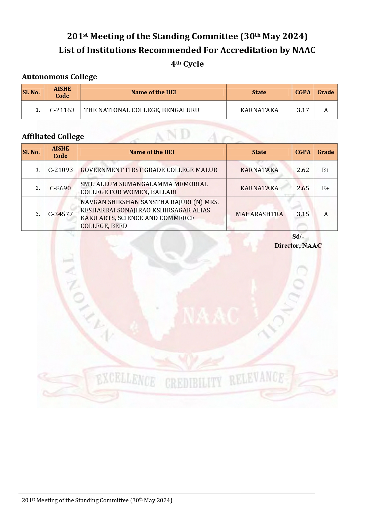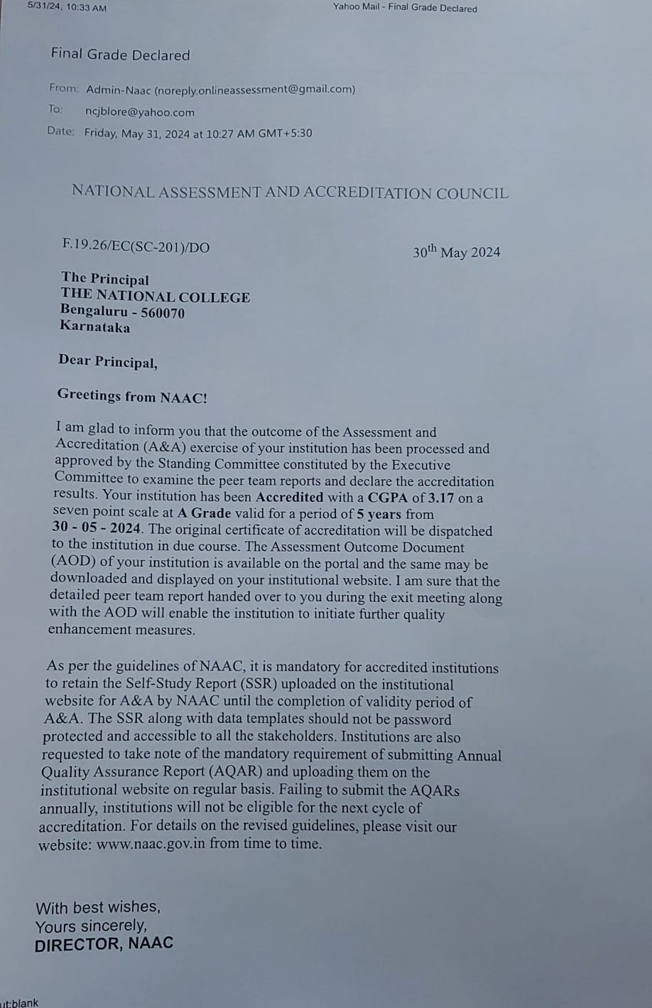 NAAC Accredited with a CGPA of 3.17 on a Seven point Scale at A Grade NAAC Peer Team Visit 23.05.2024 & 24.05.2024