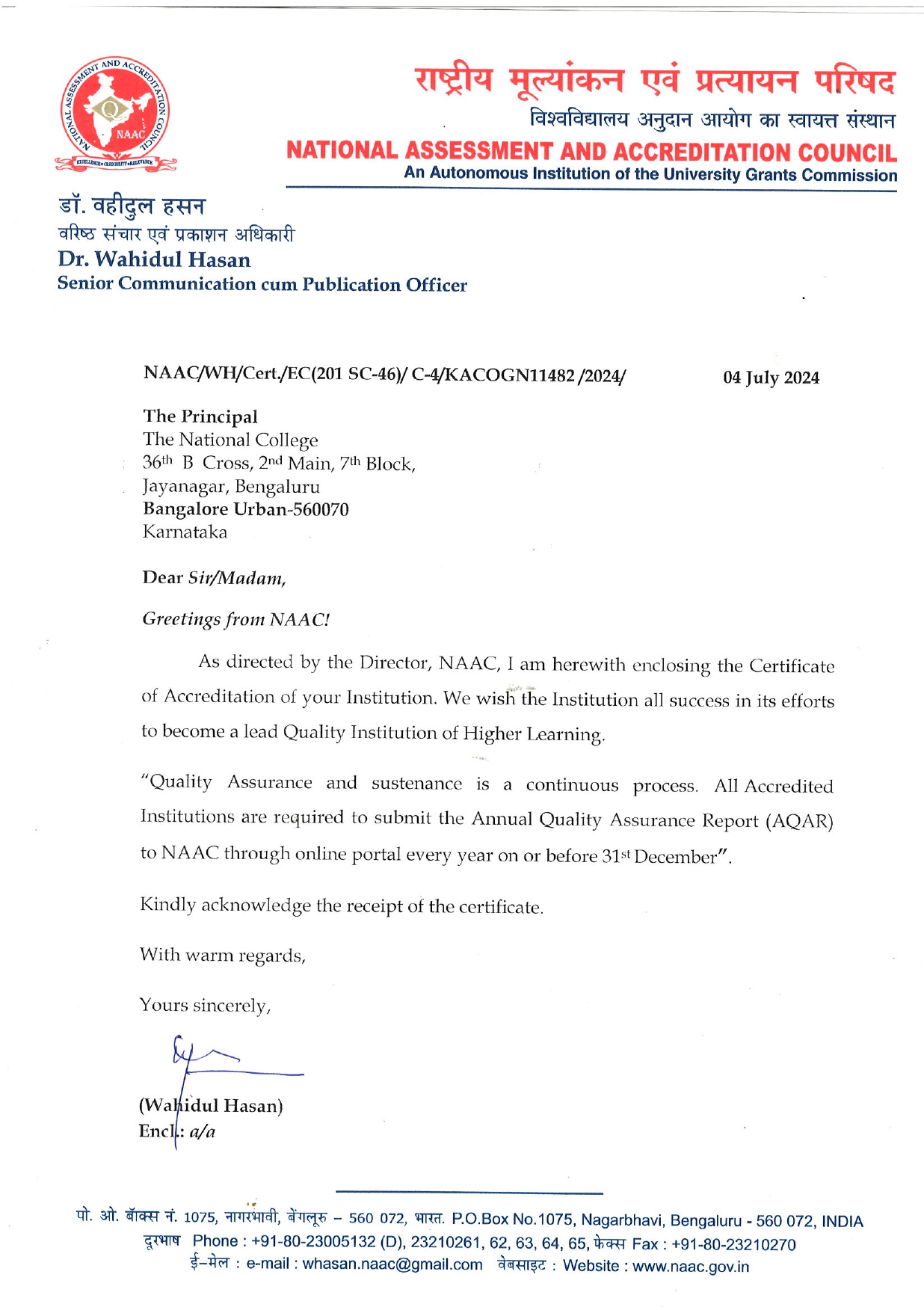 The National Education Society of Karnataka (Regd), Bangalore 560004