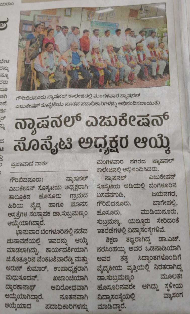 ನ್ಯಾಷನಲ್ ಎಜುಕೇಶನ್ ಸೊಸೈಟಿ ಅಧ್ಯಕ್ಷರ ಆಯ್ಕೆ