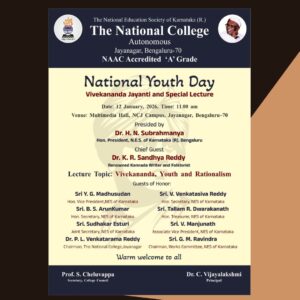 The National Degree College, Jayanagar, Bangalore, an autonomous college, is one of the fifteen institutions, being managed by the National Education Society of Karnataka. The Society was established in 1917 with nationalist ideals as the driving force.