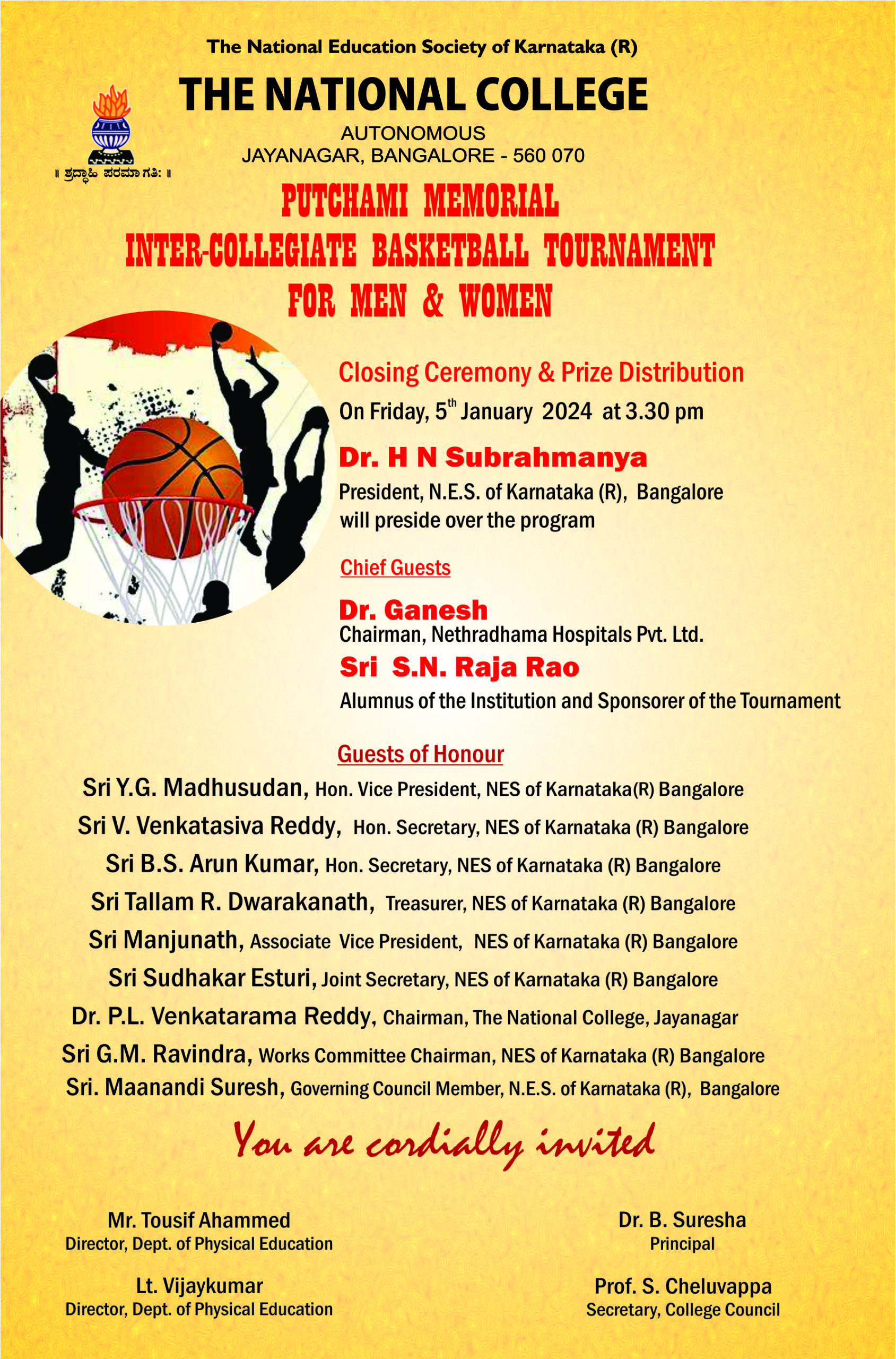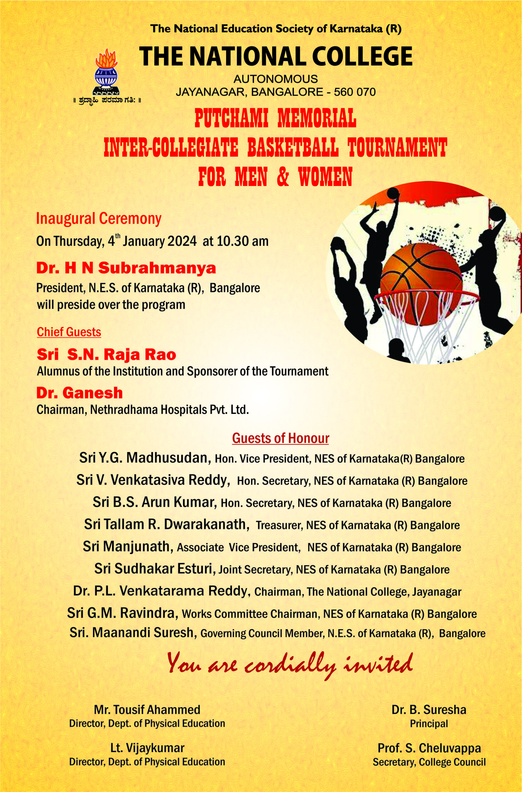 Putchami Memorial Inter-Collegiate Basket Ball Tournament From 04.01.2024-05.01.2024 Putchami Memorial Inter-Collegiate Basket Ball Tournament