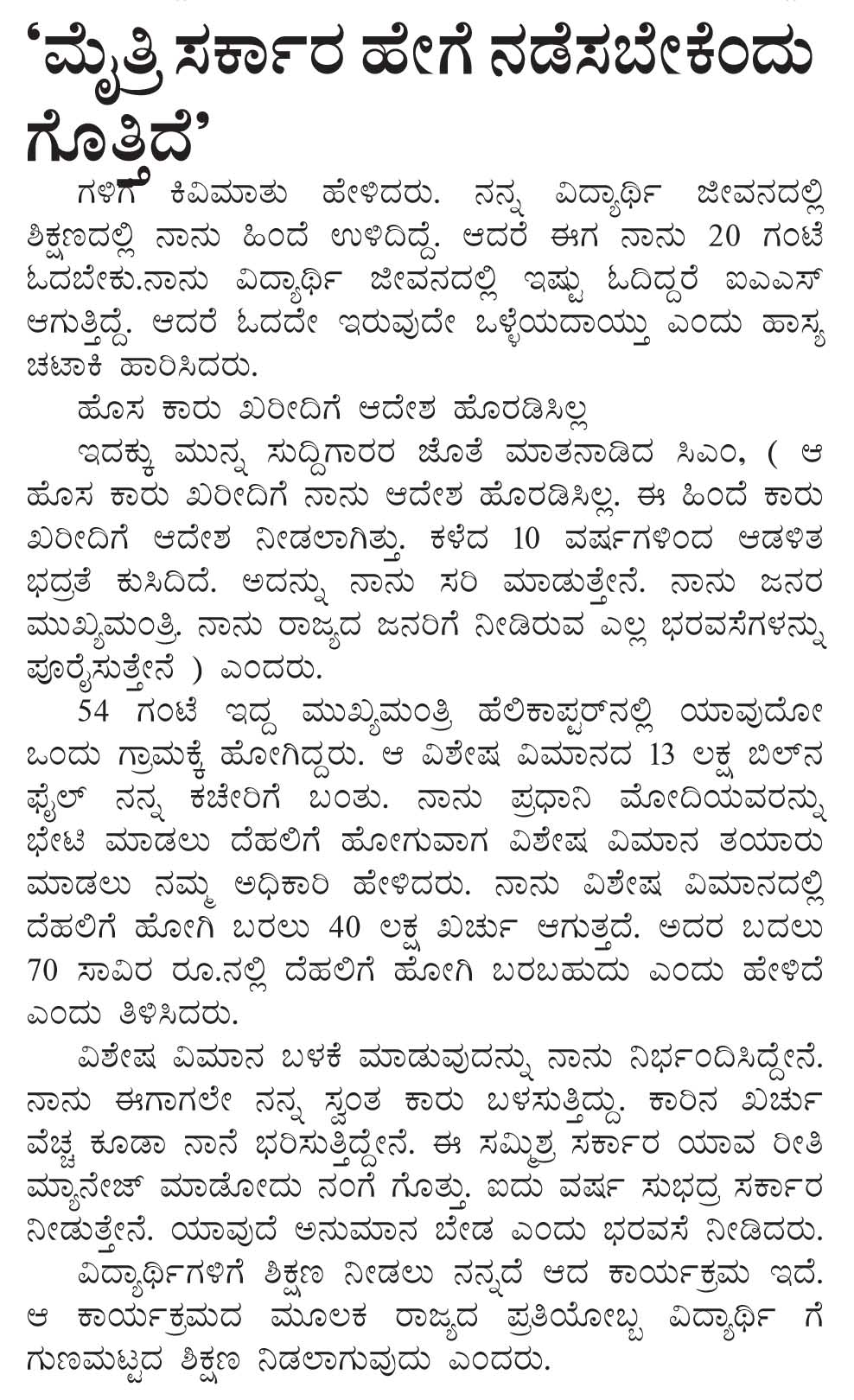 ‘ಸಮ್ಮಿಶ್ರ ಸರ್ಕಾರ ಹೇಗೆ ನೆಡೆಸಬೇಕೆಂದು ಗೊತ್ತಿದೆ’ಸುವರ್ಣ ಟೈಮ್ಸ್ ಆಫ್ ಕರ್ನಾಟಕ 5-6-2018 , ಪುಟ 1ಸುವರ್ಣ ಟೈಮ್ಸ್ ಆಫ್ ಕರ್ನಾಟಕ 5-6-2018 , ಪುಟ 11