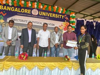 Miss. Aishwarya has qualified for the All India Inter-University Competition. Sri Sheikh Latheef, Bangalore University’s registrar, presented medals and certificates.