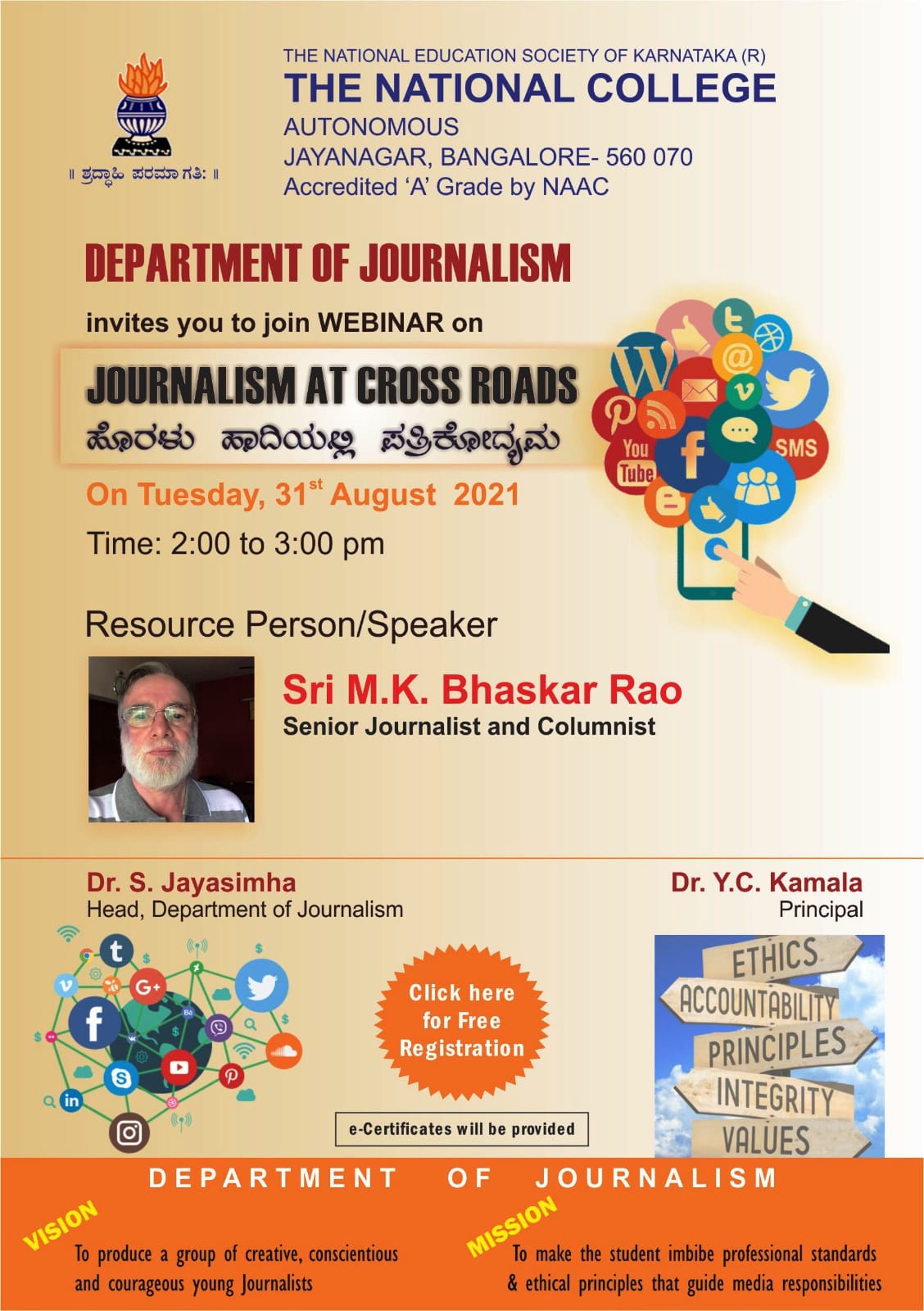 ICT Webinar Series Day #2 Organised by NCJ : Speaker Prof S M Shivaprasad